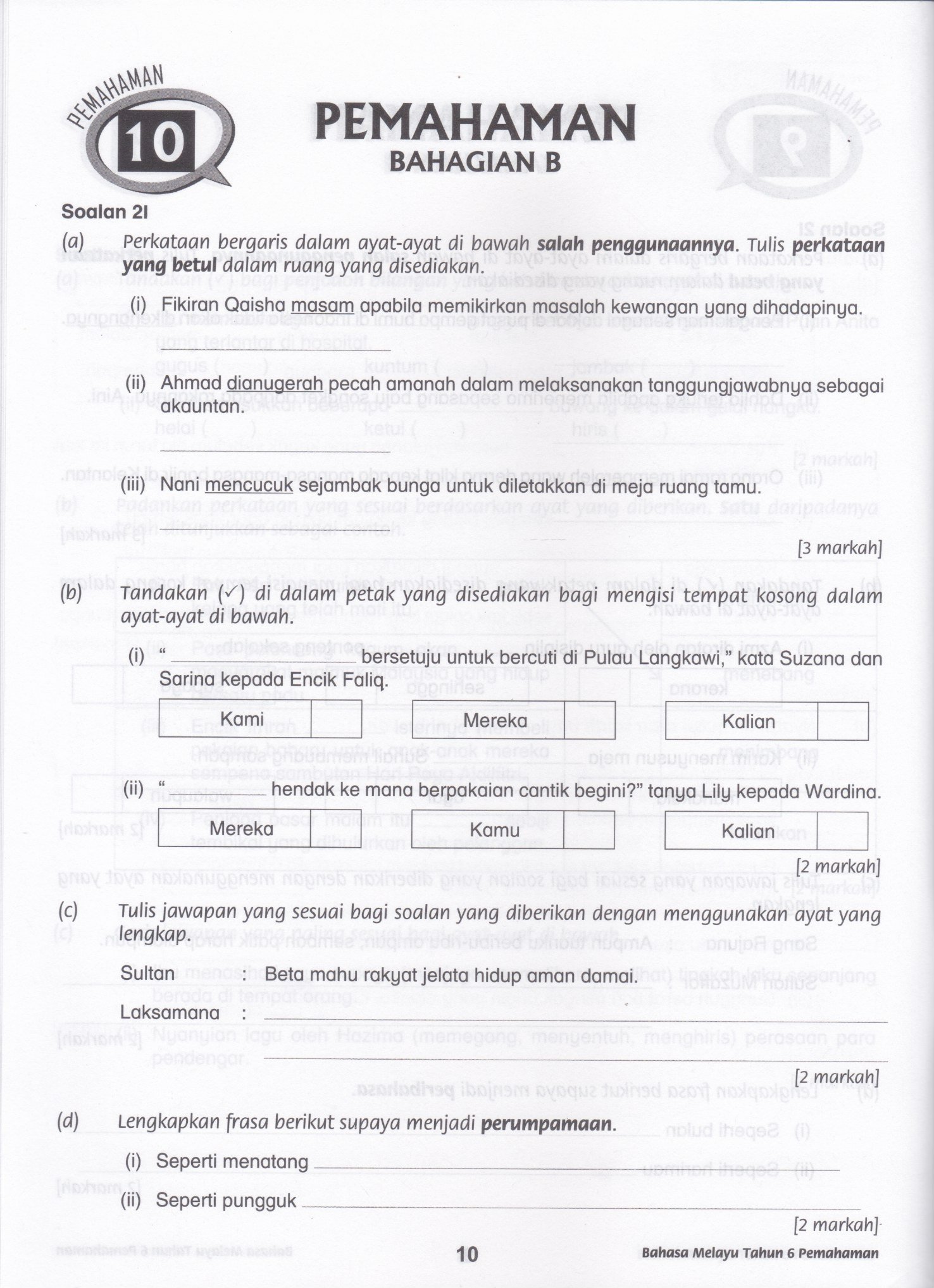 Myb Buku Latihan Praktis Kuasai Upsr Kssr Tahun 6 Bahasa Melayu Pemahaman Ilmu Bakti Shopee Malaysia from cf.shopee.com.my Bahasa melayu tahun 6 cara menulis karangan laporan (ibu bapa pendorong kejayaan murid). A guru b kerani c jururawat 33. Soalan bahasa inggeris tahun 1 contoh soalan bahasa melayu via newhairstylesformen2014.com. Iii puan zahalina mengajar di sk lubok kulit. Membaca dan memahami ayat yang mengandungi perkataan berimbuhan dalam bahan bacaan prosa dan puisi dengan sebutan yang. 5, soalan bahasa melayu tahun 2, soalan bahasa arab tingkatan 1, soalan bahasa inggeris tahun 1, (baru) kertas soalan bi tahun 1 primary writing, english via www.pinterest.com. Kemahiran menulis jawapan pemahaman bahagian b | tahun 4. Kertas 1 mempunyai 40 soalan objektif.