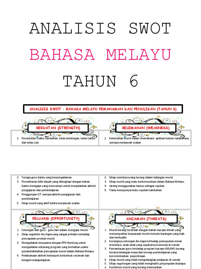 Related : Bahasa Melayu Pemahaman Tahun 6 : Persoalannya ialah sejauh manakah guru bahasa melayu (bm) melaksanakan pengajaran menggunakan komputer dan tahap penguasaan guru serta kekangan yang dihadapi..