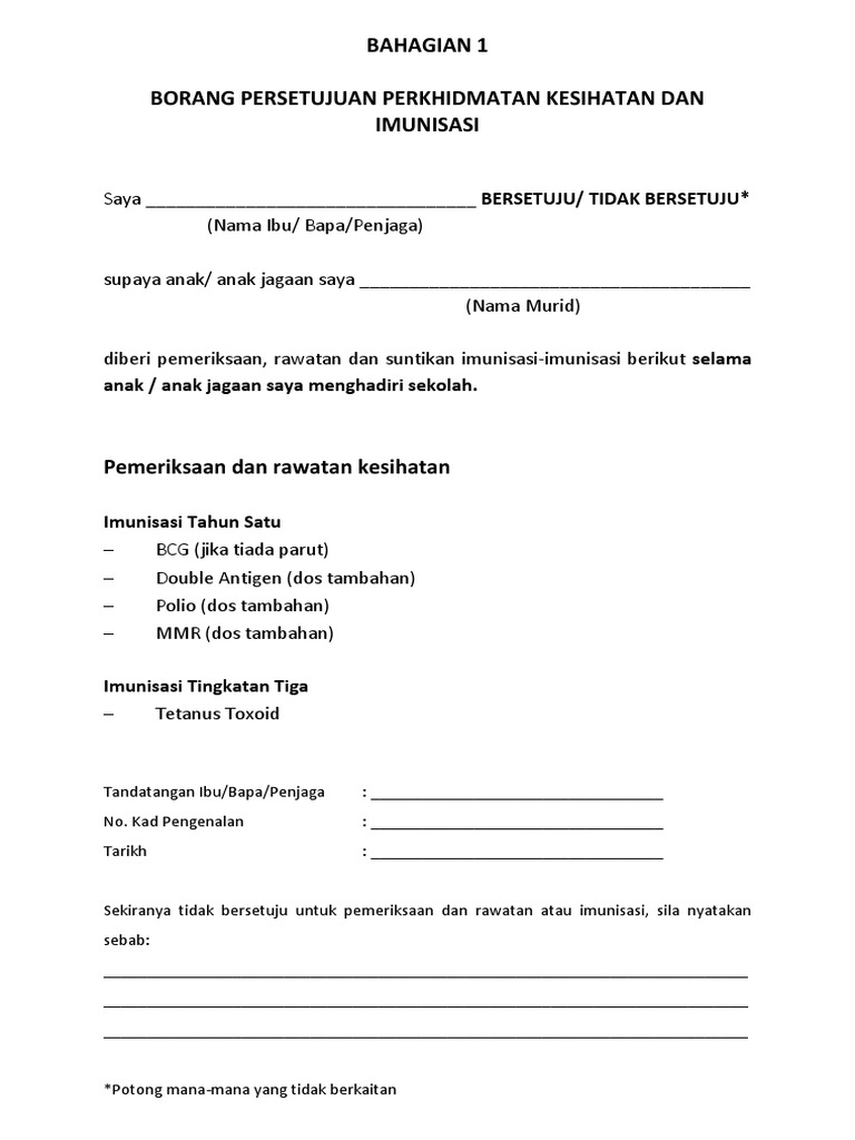 Borang Persetujuan Perkhidmatan Kesihatan Dan Imunisasi Tahun 1 - Untuk tujuan ini, kkm juga telah mendapatkan kerjasama kementerian pendidikan malaysia untuk membantu dalam.