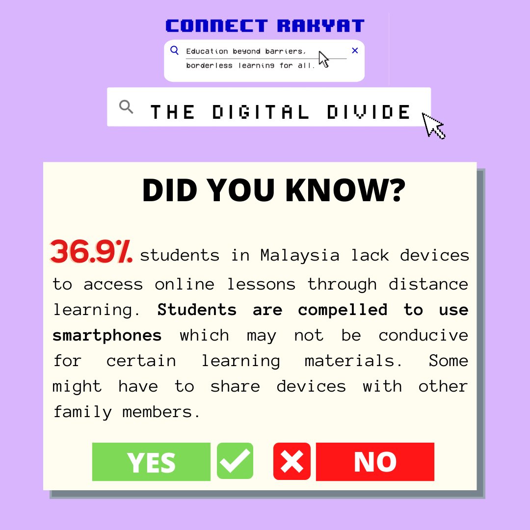 Malaysia is not a fully developed country, which has led some researchers to express concern that the limited access to ict may cause the country to fall even further Oct 19, 2020 · cover story: This article seeks to explore the existence of the digital divide among urban youths in malaysia, despite 90% of the youths having access to the internet. Jul 31, 2020 · in the process, however, the problems of a digital divide in societies and the lack of digital infrastructure have emerged. The presence of the digital divide is due to several factors that include age, location, and wealth, all of which can contribute to the gap in availability of information communication technology.